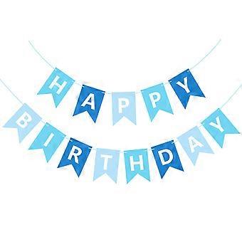 Blue Happy Birthday Banner for Boys Large Hanging Bunting Sign Reusable Party Decoration