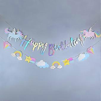 Unicorn Happy Birthday Banner with Glitter, Rainbow Party Decorations for Girls and Boys