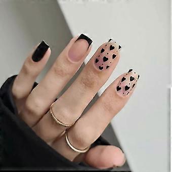 Black Heart Press On Nails Set Full Cover False Nails for Women, Long Lasting Elegant Design