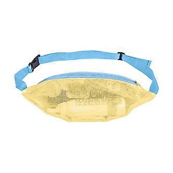 Mesh Beach Bag - Adjustable Breathable Waist Bag for Shells, Swimming, Travel, and Picnics in Yellow and Blue