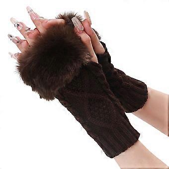 2 Pairs Brown Knit Fingerless Gloves Winter Crochet Coffee Furry Arm Warm Sleeves Soft Fluffy Knitting Thumb Hole Fur Hand Wrist Warmer Mittens for Wo