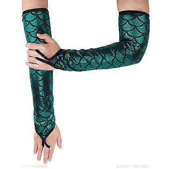 Green Fingerless Gloves Metallic Sparkly Glove Summer Long shiny Glitter Fish Scale Arm Sleeves Stage Mittens Bulk for Women Cosplay Costume Rave Part