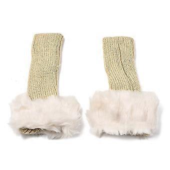 2 Pairs Furry Gloves Fingerless Thumb Hole Gloves Knit Arm Warmers Wrist Mittens for Women Writing Texting Driving