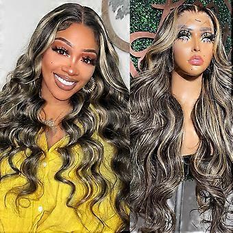 Brazilian Virgin Human Hair Lace Front Wig 13x6 HD Body Wave Balayage Ombre Pre Plucked 20 Inch