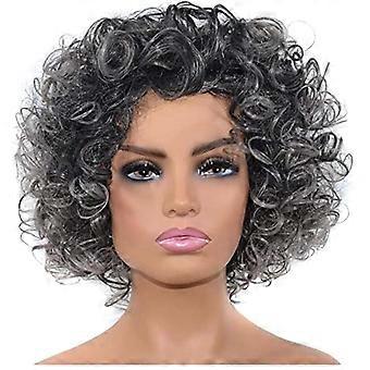 Short Grey Wig for Women Human Hair Short Curly Bob with Bangs Natural Pixie Style Adjustable Fit