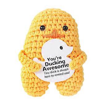 Cute Crochet Duck Handmade Wool Duck with Positive Message for Desk Decoration and Inspirational Gift