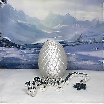 3D Printed Dragon Fidget Toy with Removable Egg, 12' White and Emerald Green Collectible Fantasy Decor Gift