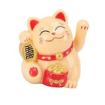Solar Powered Lucky Cat Figurine with Waving Arm Yellow Maneki Neko for Home Office Car Decor