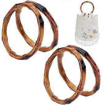 4Pcs Imitation Bamboo Handle Purses for Women 13cm Wood Round Purse Handles Ring Replacement for DIY Handmade Summer Beach Bag Straw Bag Making Suppli