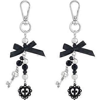 2Pcs 5 Inch Gothic Keychain Alloy Black Key Heart with Swivel Clasp for Horror Cute Bag Charm Decor Keychain for Women