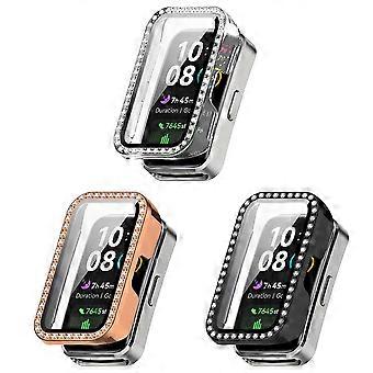 Case for Huawei Band 8 with Builtin 9H Glass Screen Protector, Full Coverage Slim Cover 3 Pack Black Rose Gold Clear
