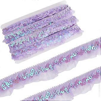 11m Purple Pleated Mesh Stretch Fringe Trim Elastic Organza Fabric Ribbon 3cm Gathered Ruffle Sequin Chiffon Lace Edge Trim for Cloth Craft Sewing Emb
