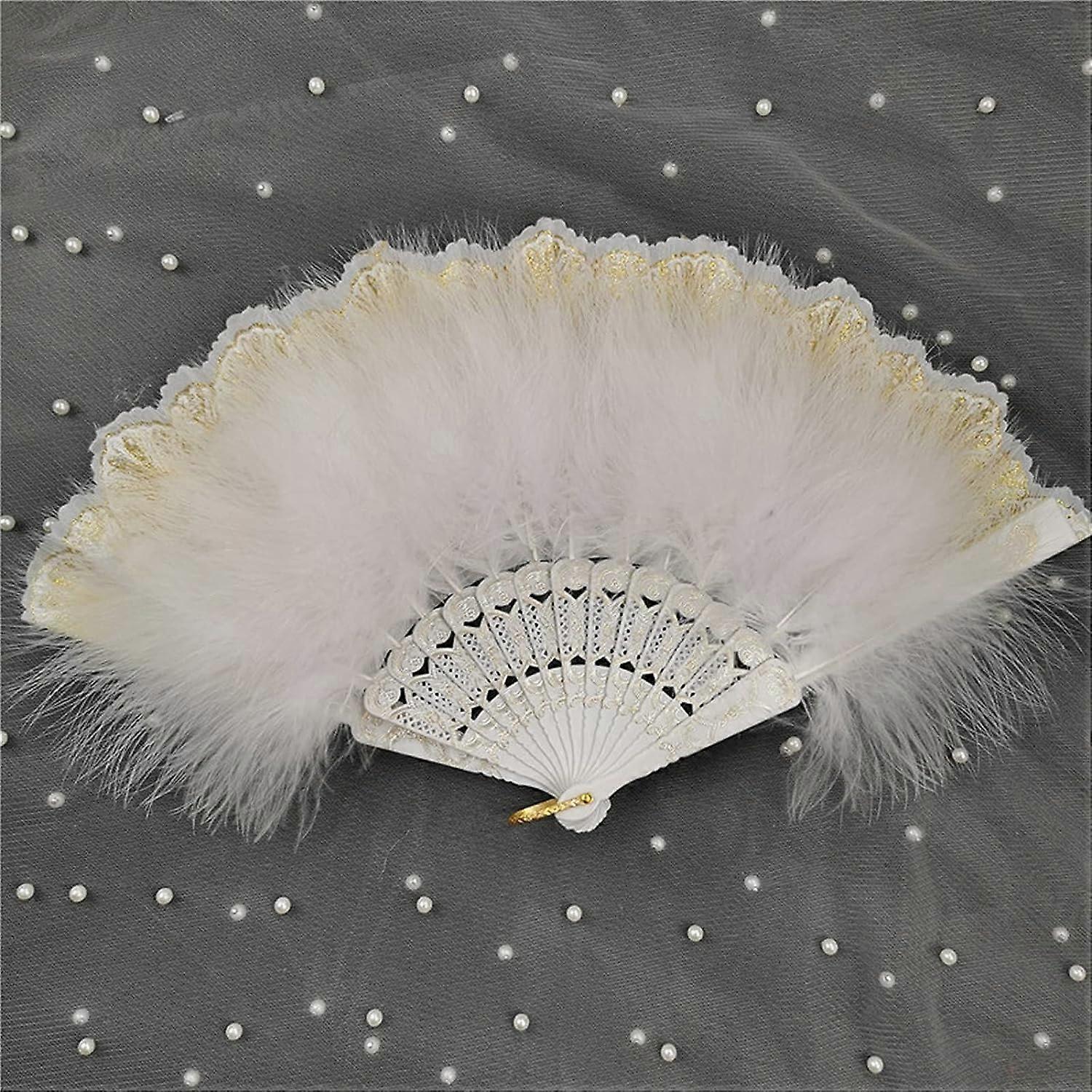 Feather Fan, Folding Handheld Fan, Japanese Dance Fan, Arts Crafts Gifts, Wedding Decor (Color : A)