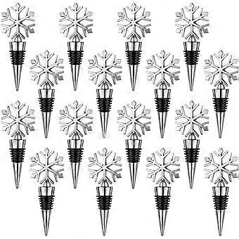 16 Pcs Snowflake Wine Bottle Stopper Set, Reusable Alloy Christmas Wine Stoppers, Keeps Wine Fresh