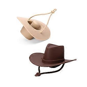 2 Pcs Cowboy Hat Silicone Wine Bottle Stopper Set, Airtight LeakProof Western Theme Gift (Brown and Khaki)