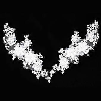 Flower Pattern Polyester Computerized Embroidered Appliques with Plastic Bead Adhesive/Sew on Patches Costume Cheongsam Accessories White 290x120x1mm