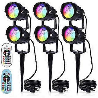 RGBW Outdoor LED Spotlight 12W Color Changing Landscape Lights IP65 Waterproof with Remote for Yard Garden Halloween Christmas Decor Set of 6