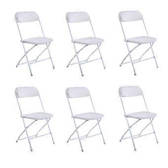 Folding Chair, 6 Pcs White Plastic Foldable Chairs, Stackable with Steel Frame 350LB Limit
