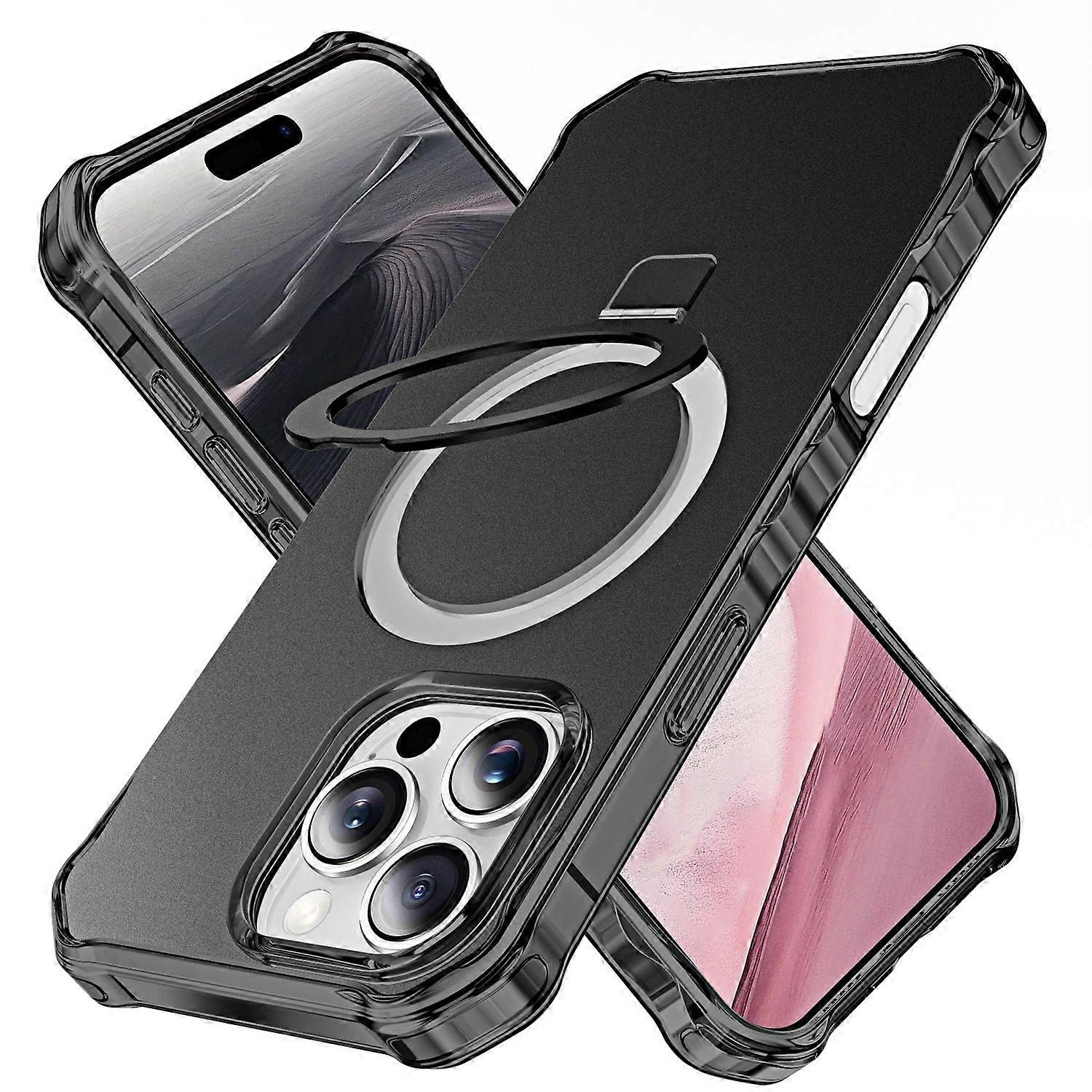 Für Apple iPhone 16 Pro Max Solid MagSafe Ring Halter Hülle Schwarz
