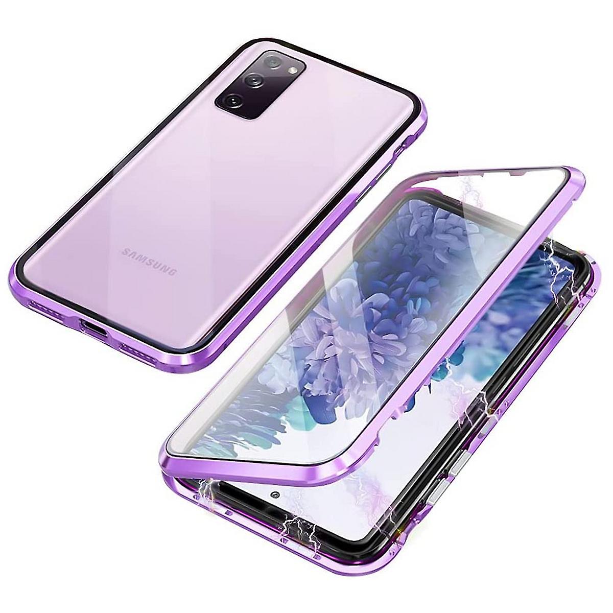 Für Samsung Galaxy S23 FE Beidseitiger 360 Grad Magnet Glas Hülle Handy Tasche Bumper Lila