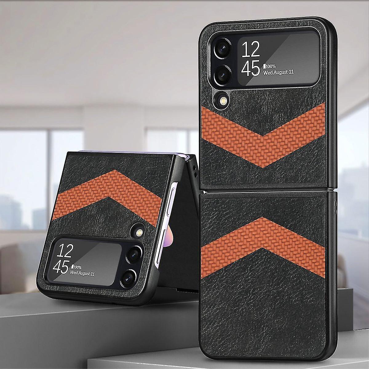 Für Samsung Galaxy Z Flip4 5G Kunstleder / Kunststoff V-Muster Struktur Handy Tasche Hülle Etuis Schwarz