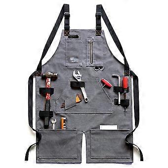 Unisex Denim Canvas Work Apron with Adjustable Neck Strap and Multiple Pockets for Chef Gardening