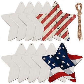 Unfinished 1 set Wood Pendant Decoration Hemp Rope Christmas Hanging Ornaments Star 178x178x2mm Hole: 4mm