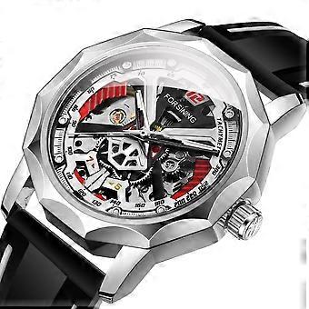 FORSINING Design Fashion Polygon Transparent Skeleton Rubber Band Men Mechanical Watch