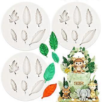 3PCS Silicone Fondant Molds with Realistic Leaf Patterns for Cake Decoration Chocolate Soap