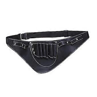 Hairdressing Scissors Pouch Leather Waist Bag with Adjustable Belt for Salon Stylists Black