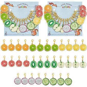 Fruit Slice Pendant Stitch Markers Alloy Enamel Crochet Lobster Clasp Charms Locking Stitch Marker with Wine Glass Charm Ring Mixed Color 3.7~4cm 8 st