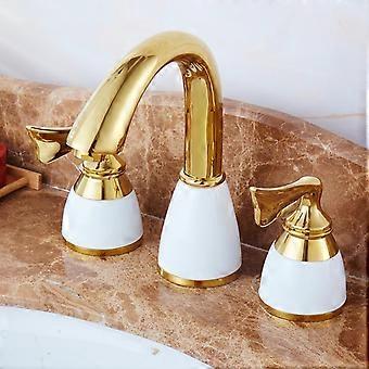 Full copper faucet in European style, antique hot and cold water faucet, vintage threehole basin faucet, gold