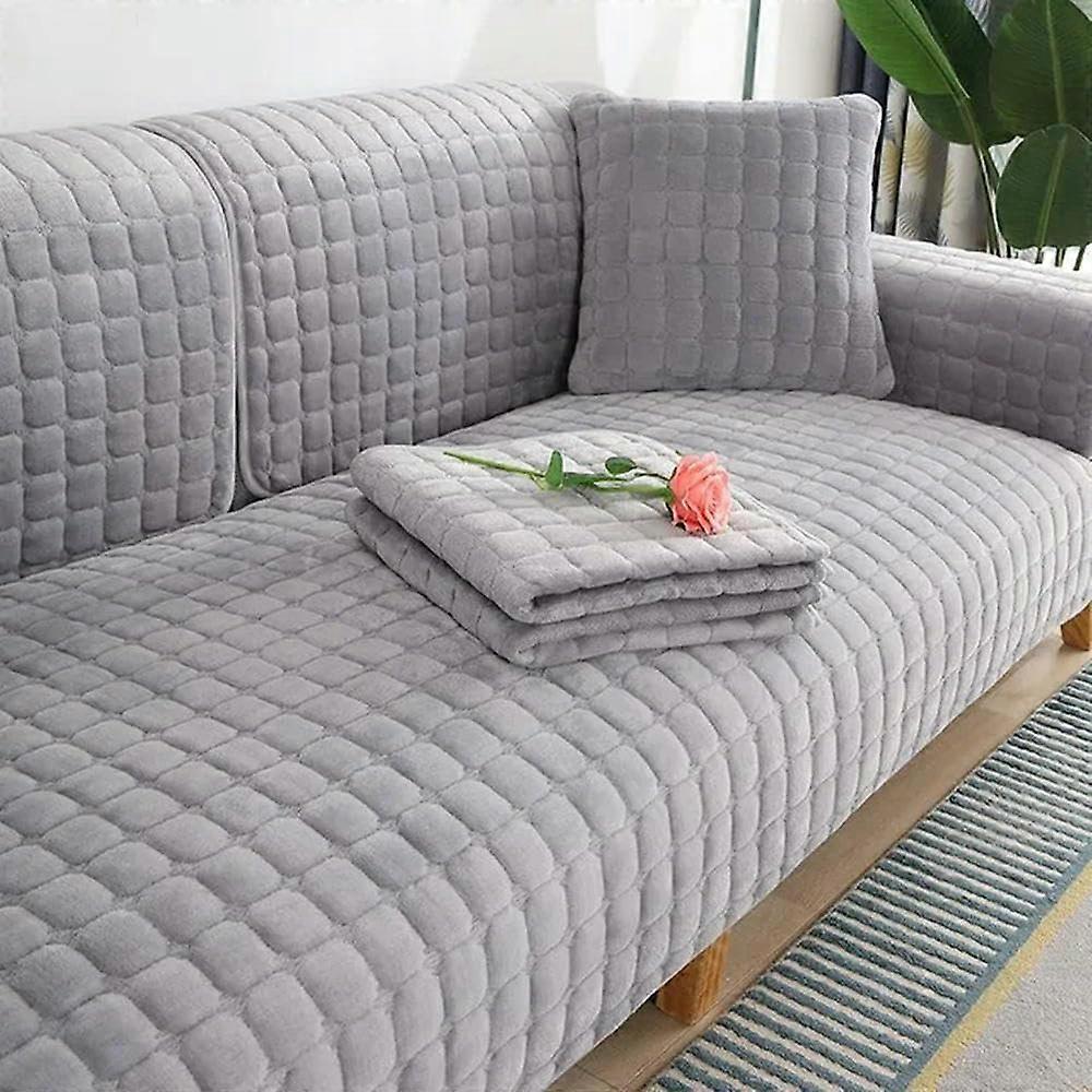 Velvet Sofa Cover Universal Plaid Plush Non-Slip Thickened, Light Grey 45x45 Pillowcase (1 Pc) Warm Flannel