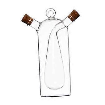 2 in 1 Oil and Vinegar Dispenser Clear Glass Cruet Bottle with Separate Chambers and Cork Stopper