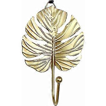 Wall Mounted Coat Rack with Leaf Design Wrought Iron Hooks for Entryway Bathroom Storage Gold Green