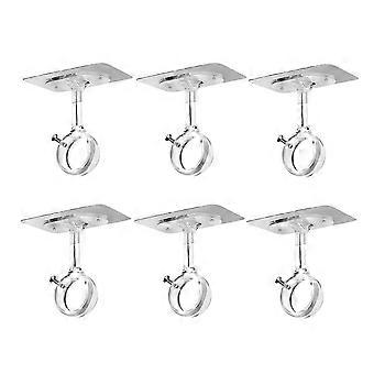 6 Pack No Drill Ceiling Mount Rod Brackets, Heavy Duty Self Adhesive Holders, Adjustable Hooks Hangi