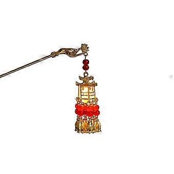 Lantern Hair Stick for Women with Luminous Fringe Hair Pin, Retro Hanfu Golden Bun Jewelry