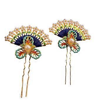 2Pcs Chinese Hanfu Hairpin with Pearls Bridal Crown Headdress UShape Wedding Hair Accessories