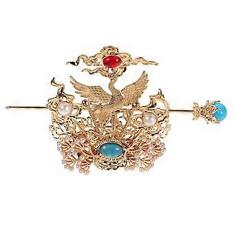 Hanfu Hairpin and Chinese Hair Crown Set with Gemstone Alloy Crane Design for Cosplay and Performance