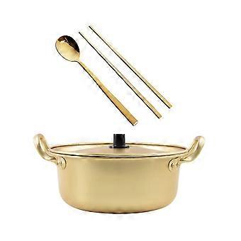 Korean Ramen Pot Non Stick Double Handle Aluminum Fast Heating Golden Noodle Pot 16x14x6.5CM