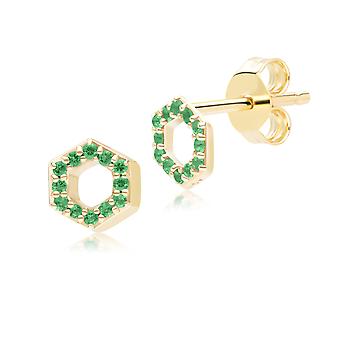 Geometric Hex Emerald Stud Earrings in 9ct Yellow Gold