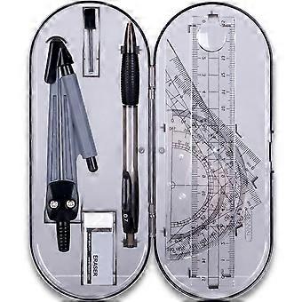 Geometry Set, 8 Pieces Maths Drawing Compass Set for Students with Shatterproof Storage Box