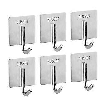 Adhesive Towel Hooks Brushed Nickel Waterproof No Drill 304 Stainless Steel Wall Hangers 6 Pack