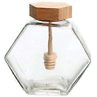 Glass Honey Container Jar With Wooden Dipper And Airtight Lid Thick Glass Easy Clean Wide Mouth Storage Honey Syrup Jam