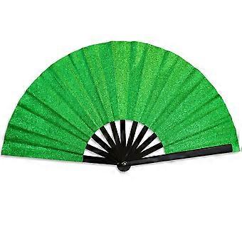 Glitter Green Hand Fan XLarge - Durable Event Fan for Raves, Parties, Indoor & Outdoor Use, Lightweight Design