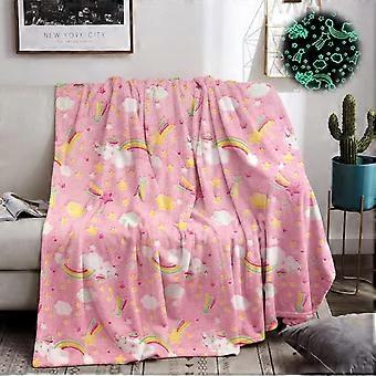 Glow In The Dark Unicorn Blanket 60x78in D Model Flannel Plush Throw For Kids Bed Sofa Chair