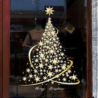 Gold Christmas Tree Window Static Stickers for Glass, DIY Wall Window, Door, Mural, Showcase Decals (1 Piece) Single Pack