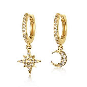 Gold Plated 925 Sterling Silver Micro Pave Moon Star Charm Earring