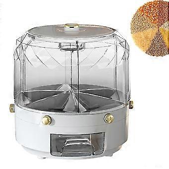 Grain Storage Container - 360° Rotating Rice Dispenser, 6-Grid Round Grain Storage Box, 9.84 Inches, Gray Gold Plated