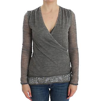 Gray Wool Blend Stretch Long Sleeve Sweater
